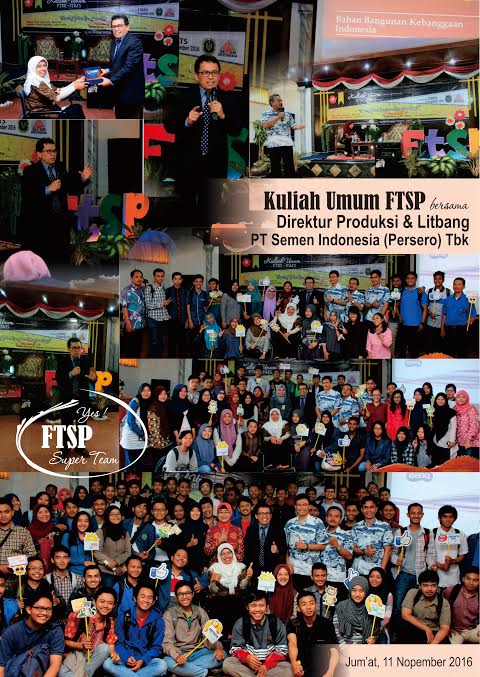 Fakultas Teknik Sipil dan Perencanaan (FTSP) kembali menggelar jamuan ilmu melalui kegiatan kuliah umum. Materi yang diangkat kali ini adalah menguak perkembangan “Teknologi Bahan Bangunan Kebanggaan Bangsa”, khususnya bahan bangunan berupa semen. Bapak Ir. Johan Samudra, MM, selaku Direktur Produksi dan Litbang PT Semen Indonesia (Persero) Tbk, menjadi pemateri utama dalam kegiatan kuliah umum pada Jum’at, 11 Nopember 2016. Dalam paparannya Bapak Johan disertai oleh tim dari bagian Riset and Development, termasuk Bapak Tri Sutrisno, ST, MT yang merupakan alumnus berprestasi dari Program Magister ITATS.