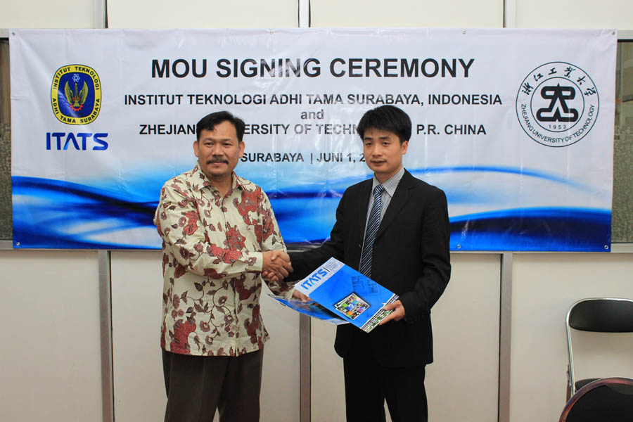 Institut Teknologi Adhi Tama Surabaya kembali menjain kerjasama dengan universitas di luar negeri. Kali ini dengan Zhejiang University of Technology, P. R. China. Kerjasama tersebut ditandatangani oleh kedua belah pihak yaitu perwakilan dari Zhejiang University of Technology, P. R. China dan dari Institut Teknologi Adhi Tama Surabaya diwakili oleh Rektor ITATS Syamsuri, ST., MT., Ph.D.