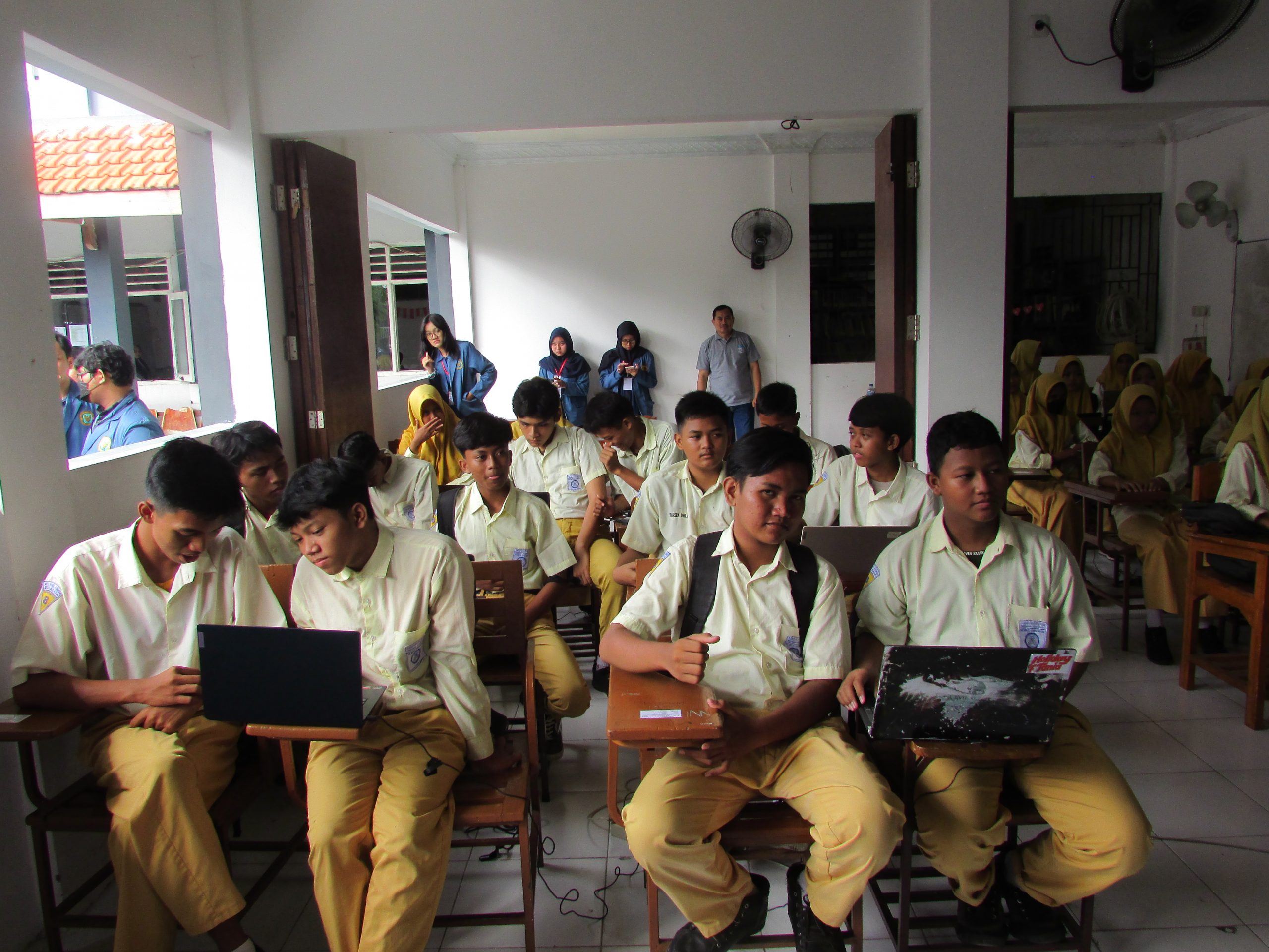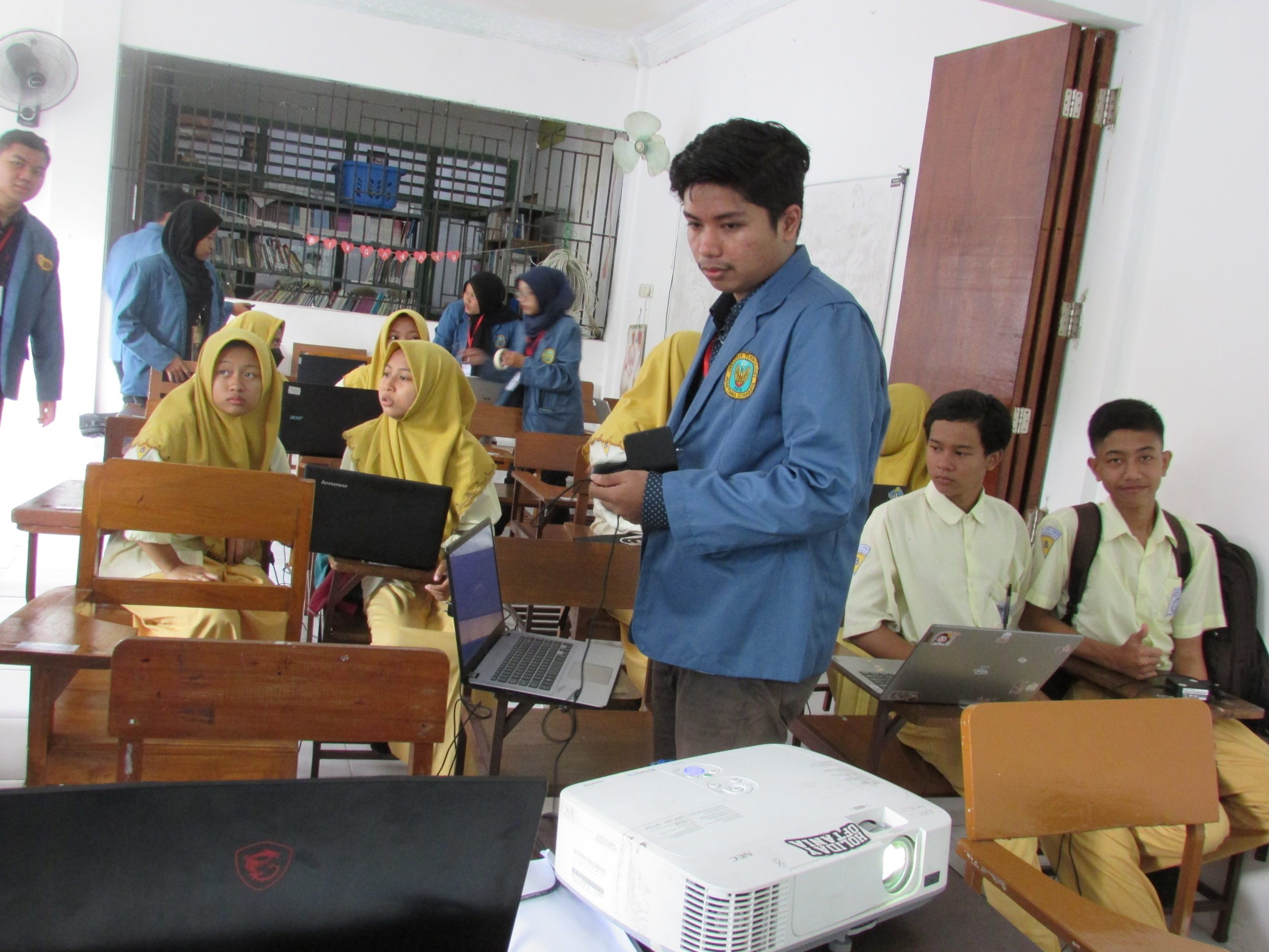 Pada hari kedua KKN-PPM diadakan penyerahan dan pelatihan program E-Library bagi Guru dan juga siswa siswi kelas 8 dan 9. Program E-Library ini sangat bermanfaat bagi pihak MTs yang memiliki sebuah platform perpustakaan digital yang menyedian kemudahan bagi para penggunanya ketika mengakses sumber informasi elektronik dengan gadget yang tidak lagi tergantung kepada waktu layanan perpustakaan konvensional.