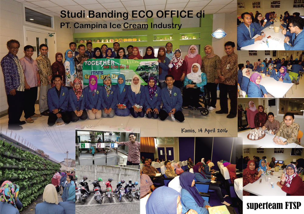 Dua tahun lalu ITATS mendapatkan penghargaan dari Walikota Surabaya atas prestasinya meraih juara pertama Eco Campus. Untuk mempertahankan dan meningkatkan kualitas lingkungan di kampus, maka pada Kamis, 14 April 2016 telah dilakukan studi banding eco office di PT. Campina Ice Cream Industry. Kegiatan yang digagas oleh Fakultas Teknik Sipil dan Perencanaan (FTSP) ini diikuti oleh pimpinan, dosen, mahasiswa S1 dan S2, serta tim Green and Clean ITATS. Pada kesempatan tersebut telah dilakukan observasi dan diskusi untuk mendapatkan ide-ide baru bagi upaya pengembangan konsep-konsep eco campus yang dapat diterapkan di ITATS.