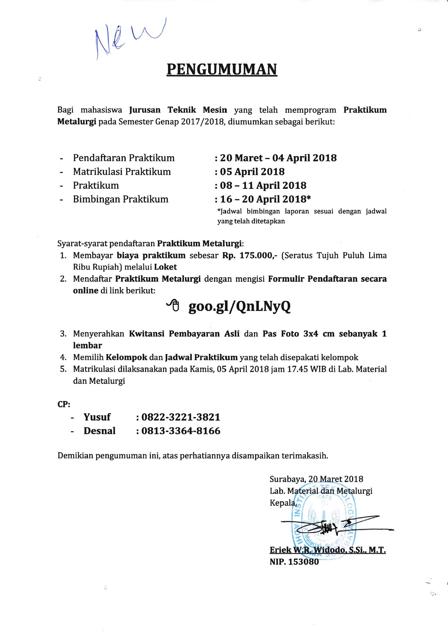 (Pengumuman Prak. Metalurgi 2017-2018 Genap)