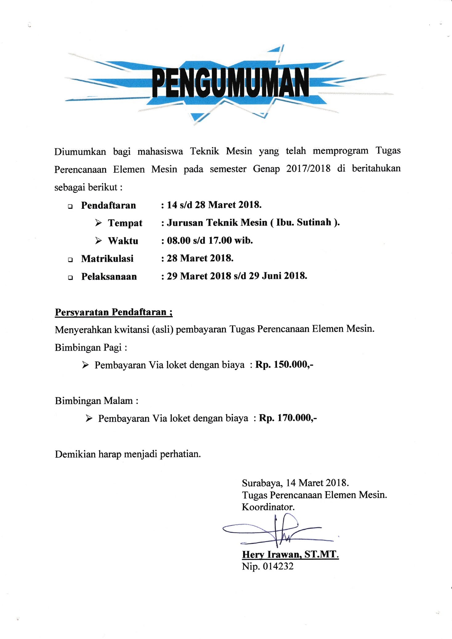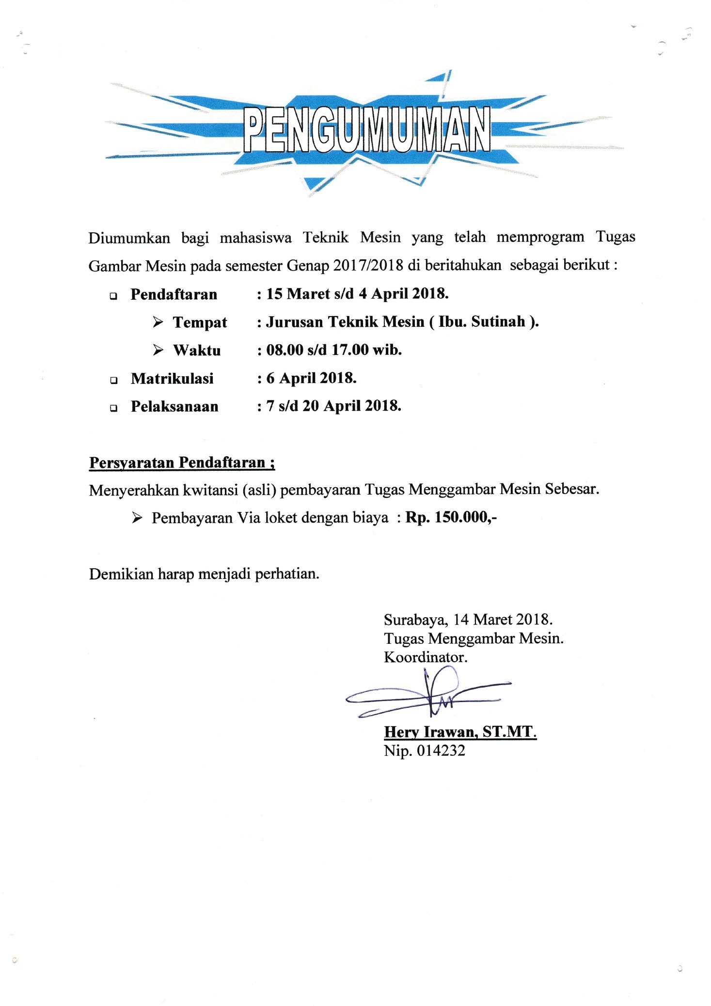 (Pengumuman Tugas Gambar Mesin 2017-2018 Genap)