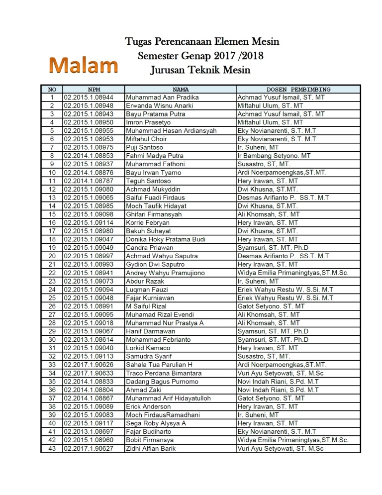 (Pengumuman Daftar Dosen Pembimbing PEM 2017-2018 Genap Malam 2)