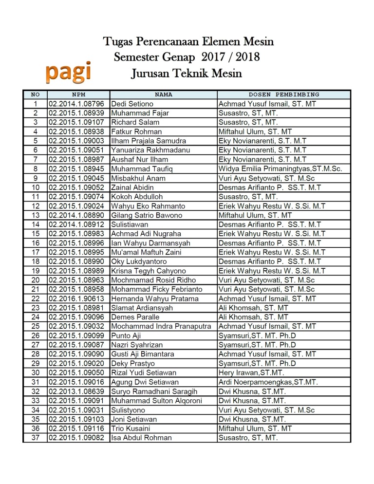 (Pengumuman Daftar Dosen Pembimbing PEM 2017-2018 Genap Pagi 2)