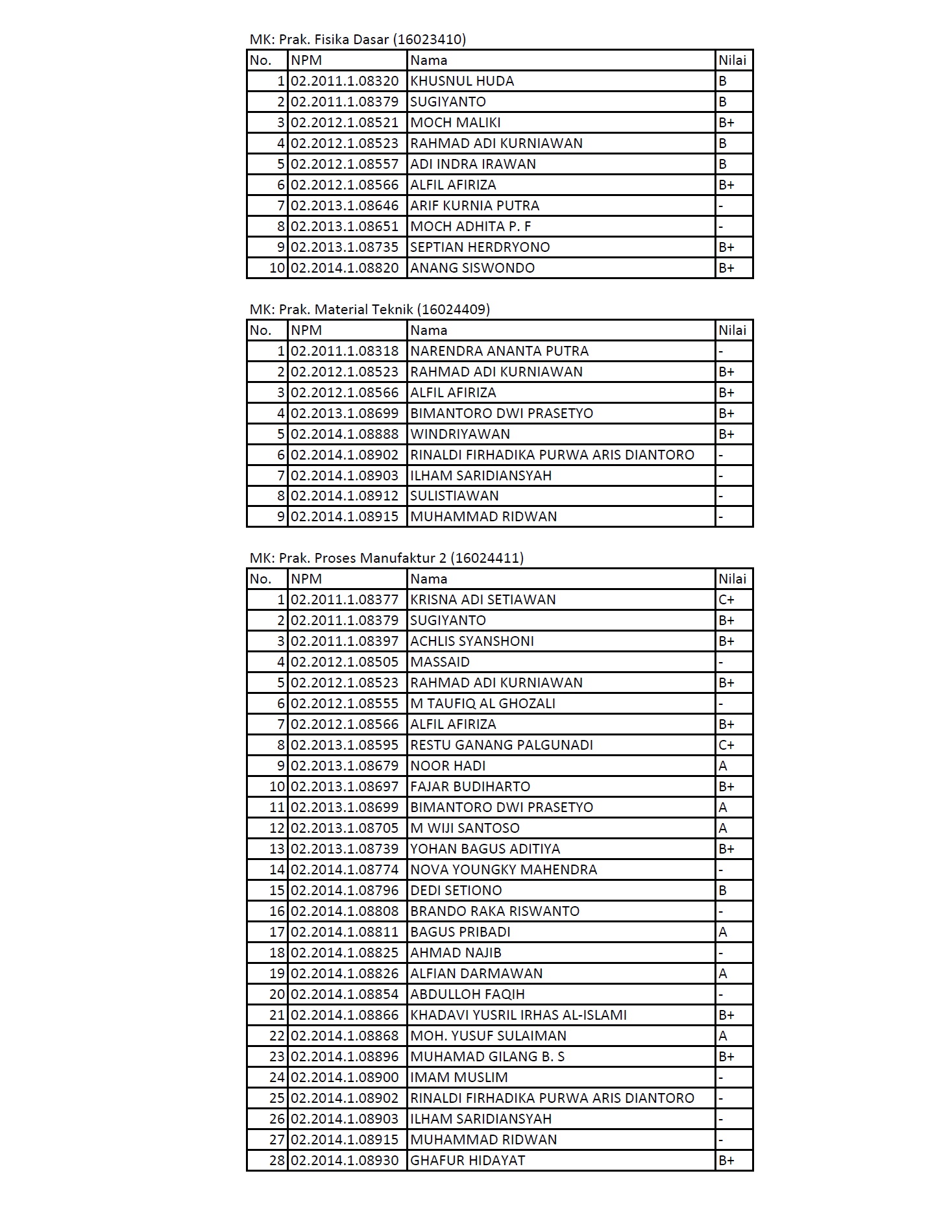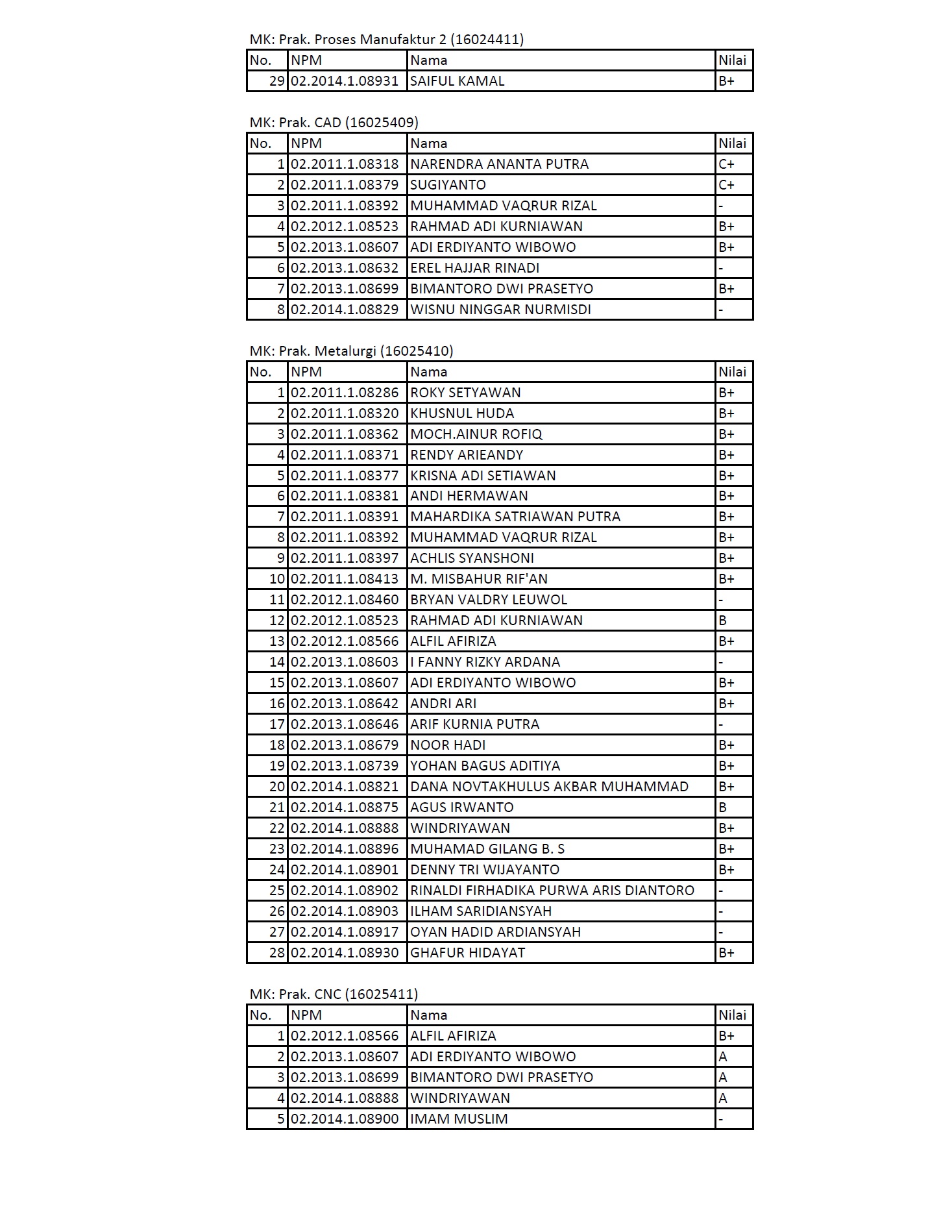 Pengumuman Prak. Proses Manufaktur 2 2019-2020 Genap