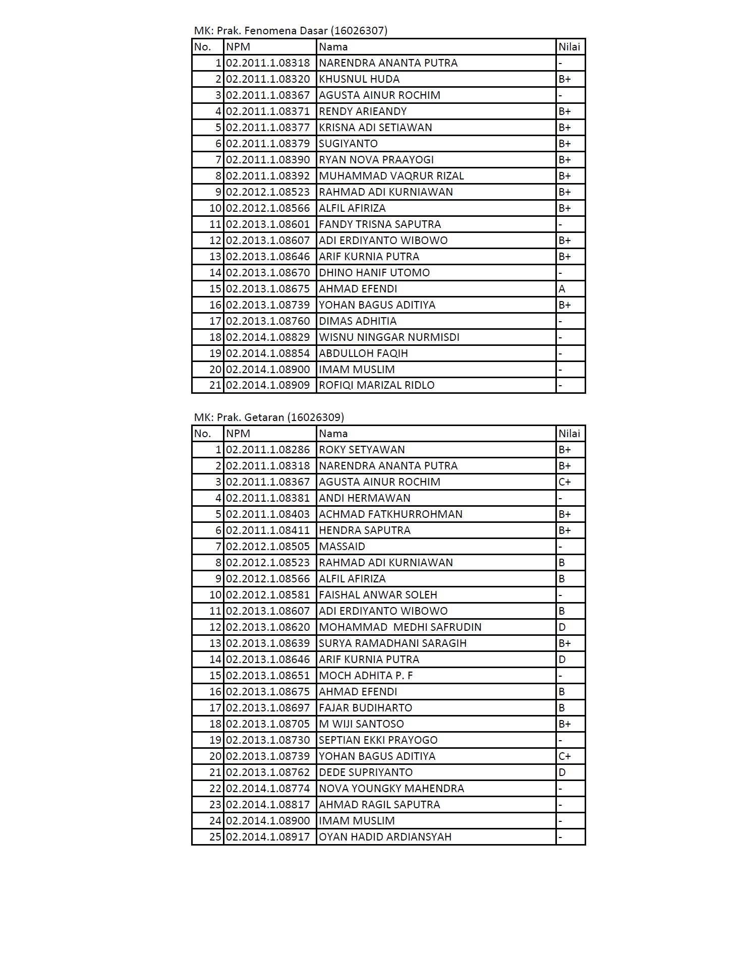 Pengumuman Prak. Fenomena Dasar 2019-2020 Genap