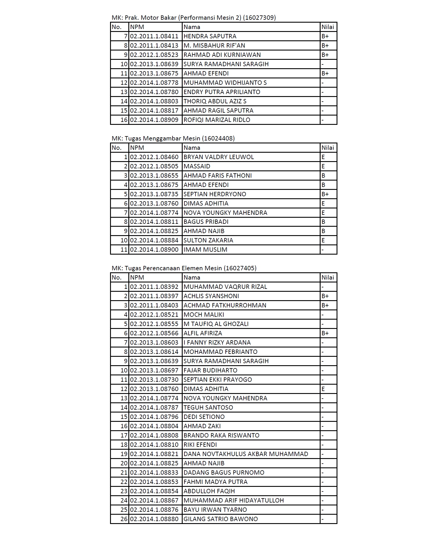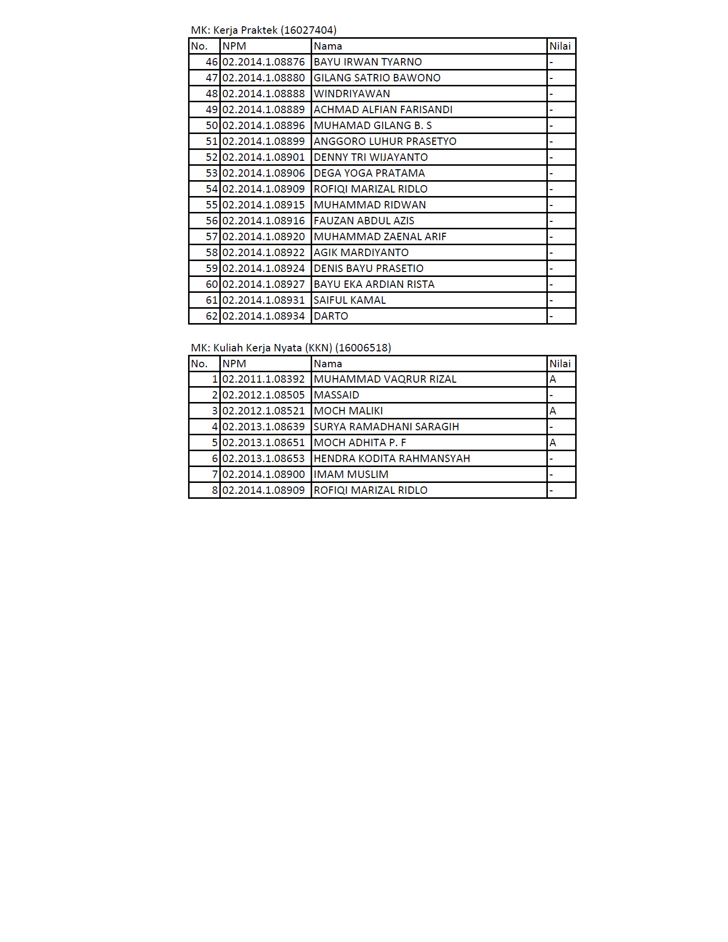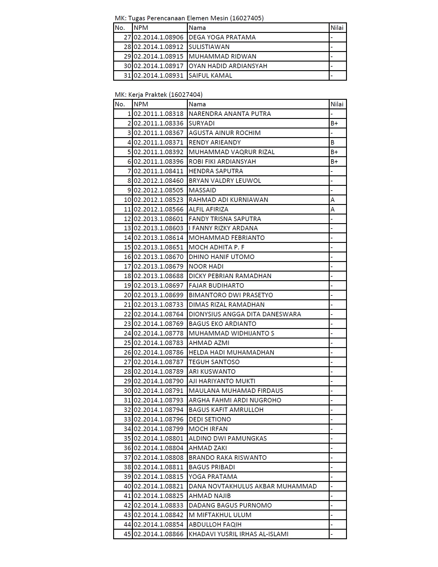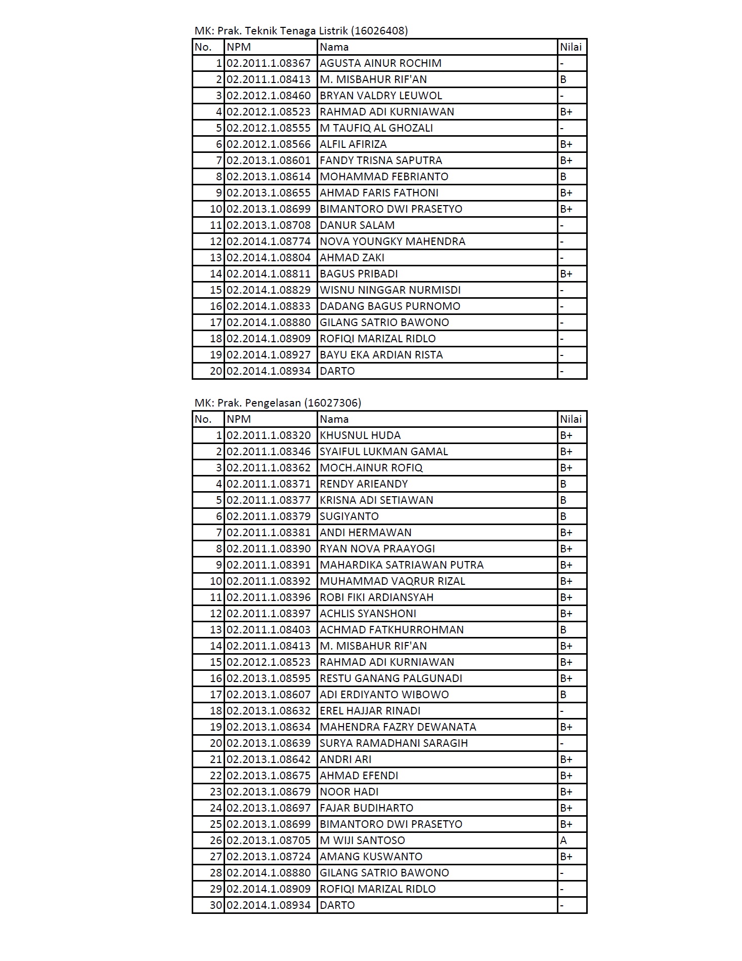 Daftar Nilai Praktikum dan Tugas Angkatan 2011-2014 yang program praktikum semester genap 2017-2018: