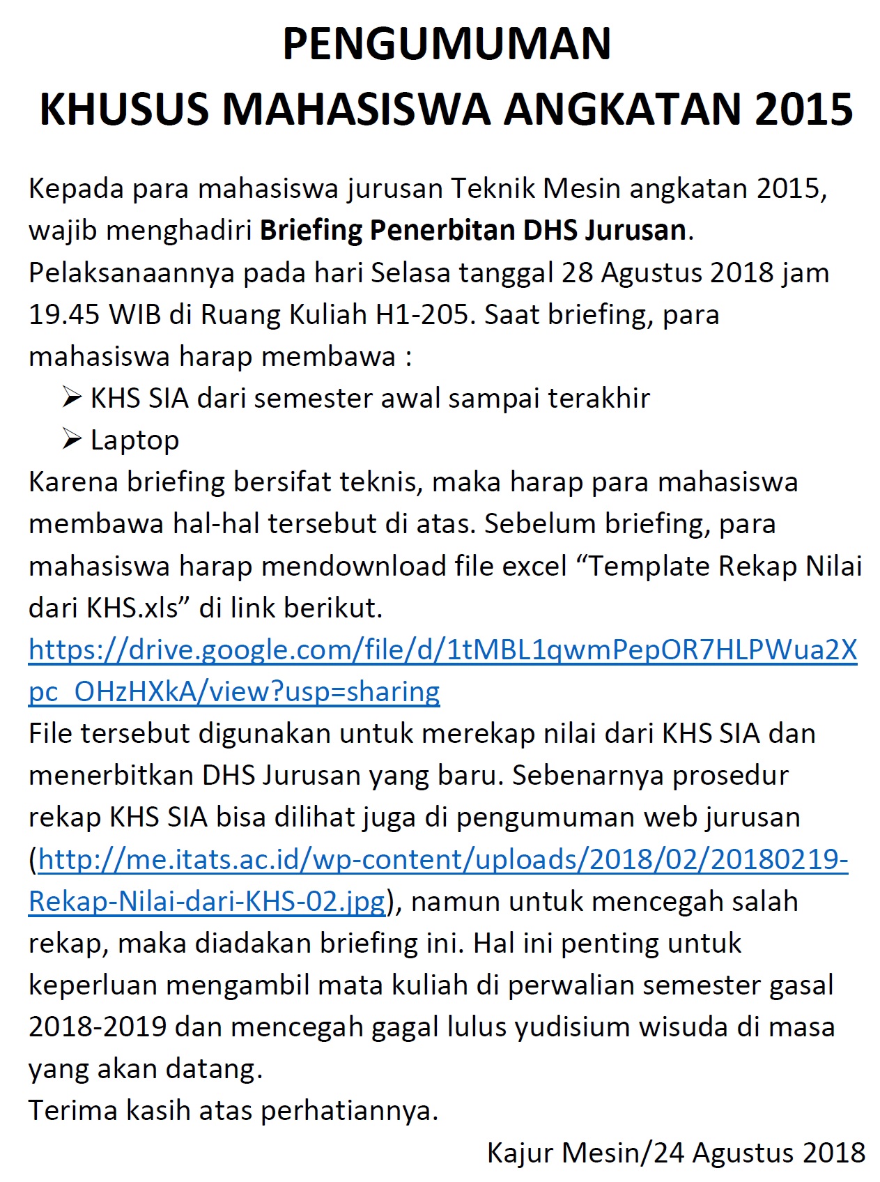 (Pengumuman Rencana Wisuda Mesin 59 Nopember 2018)