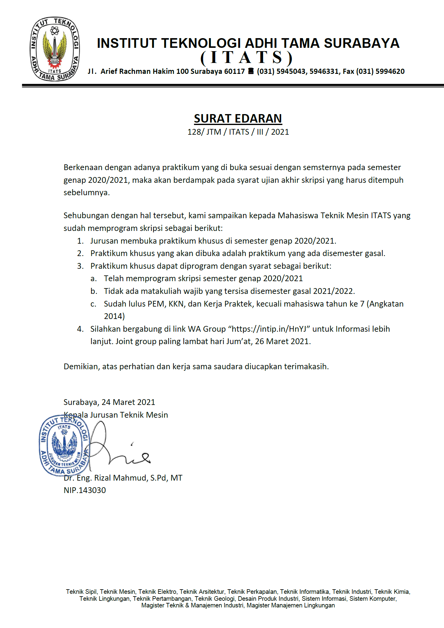 (Pengumuman Webinar Sharing Industri “Peranan Teknik Mesin di Industri Semen Nasional”)