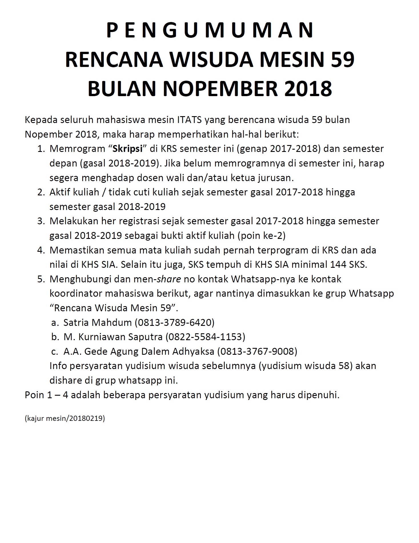 (Pengumuman Rencana Wisuda Mesin 59 Nopember 2018)