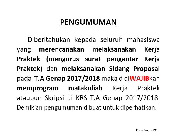 (Pengumuman Wajib Program KP dan Skripsi Genap 17/18)