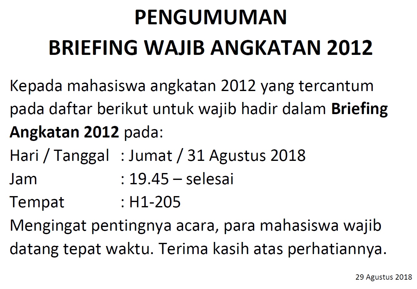 (Pengumuman Briefing Wajib Angkatan 2012 bagian 2)