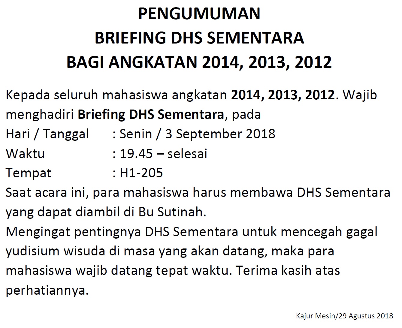 (Pengumuman Briefing DHS Sementara Angkatan 2014, 2013, 2012)