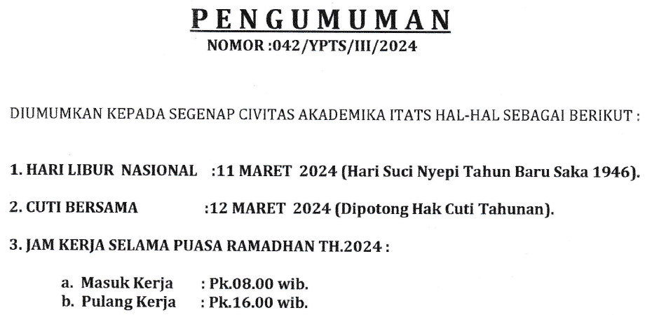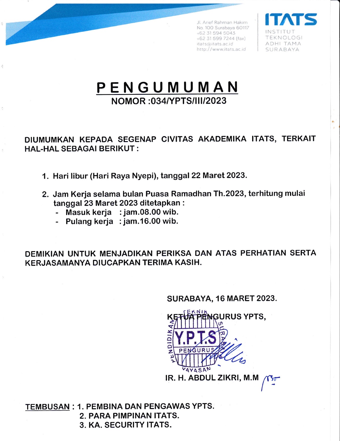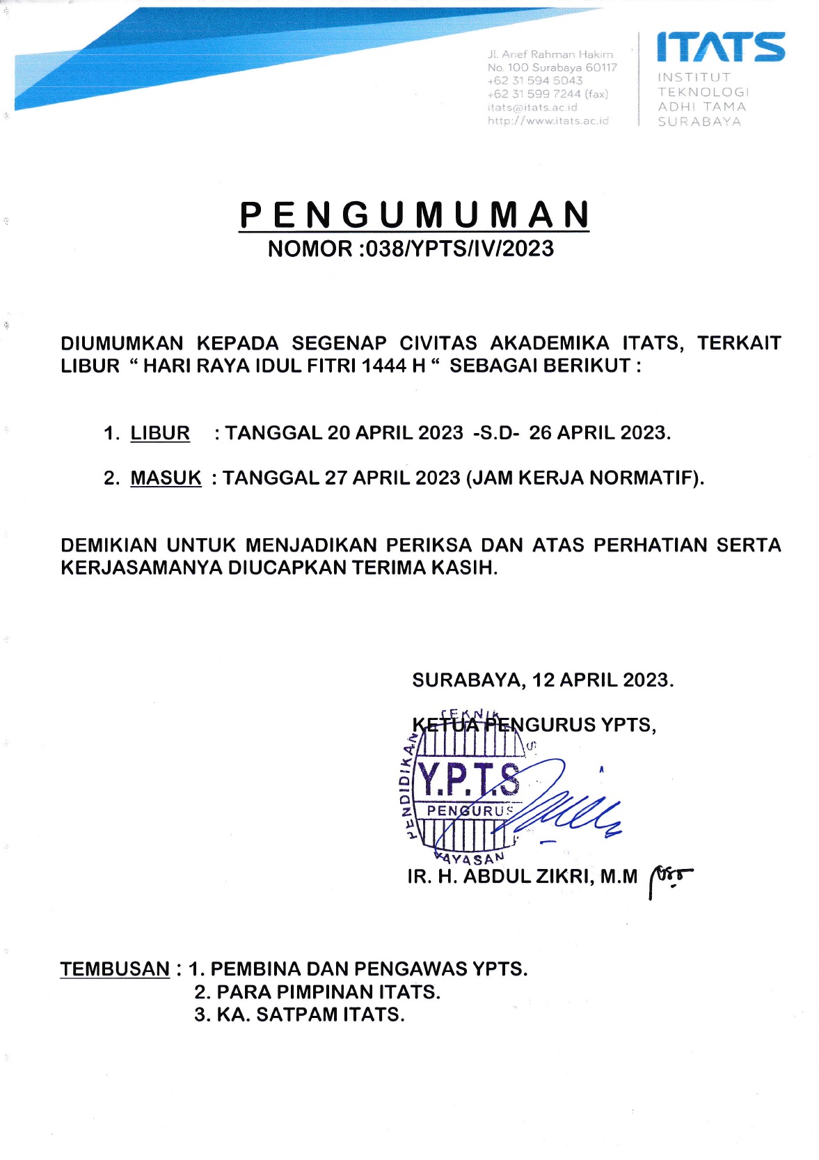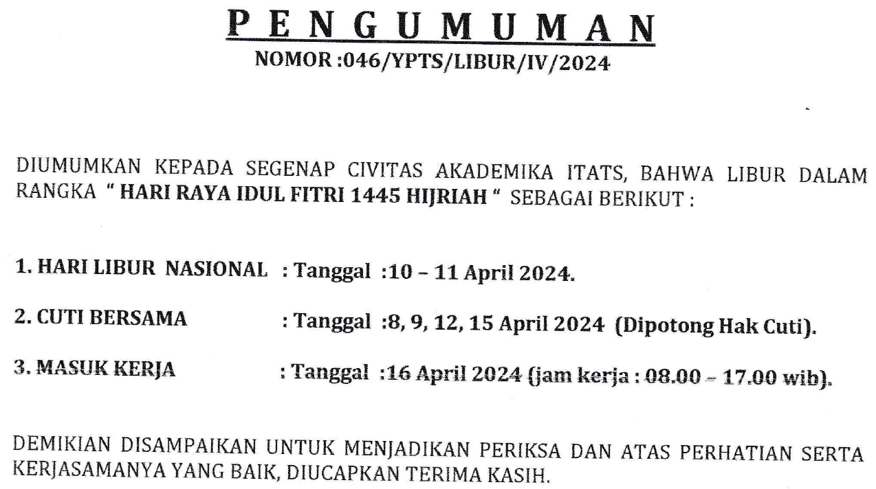 (Pengumuman Libur Hari Raya Idul Fitri 1441 H / Tahun 2020)